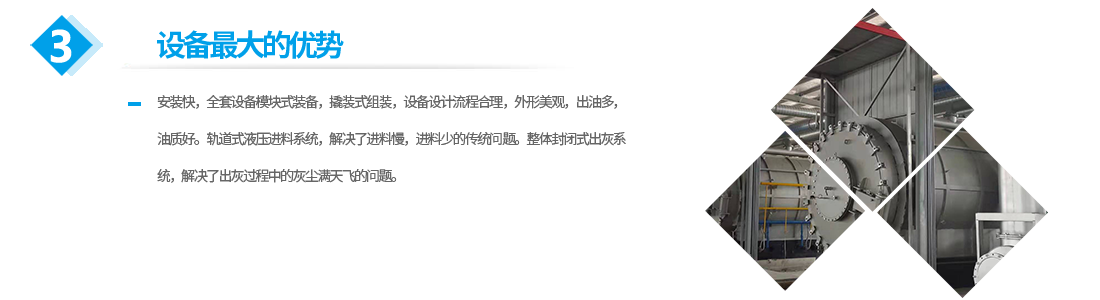 公司生產(chǎn)的設(shè)備的優(yōu)勢:安裝快,全套設(shè)備模塊式裝備,撬裝式組裝,設(shè)備設(shè)計流程合理,外形美觀,出油多,油質(zhì)好。軌道式液壓進(jìn)料系統(tǒng),解決了進(jìn)料慢,進(jìn)料少的傳統(tǒng)問題。整體封閉式出灰系統(tǒng),解決了出灰過程中的灰塵滿天飛的問題。